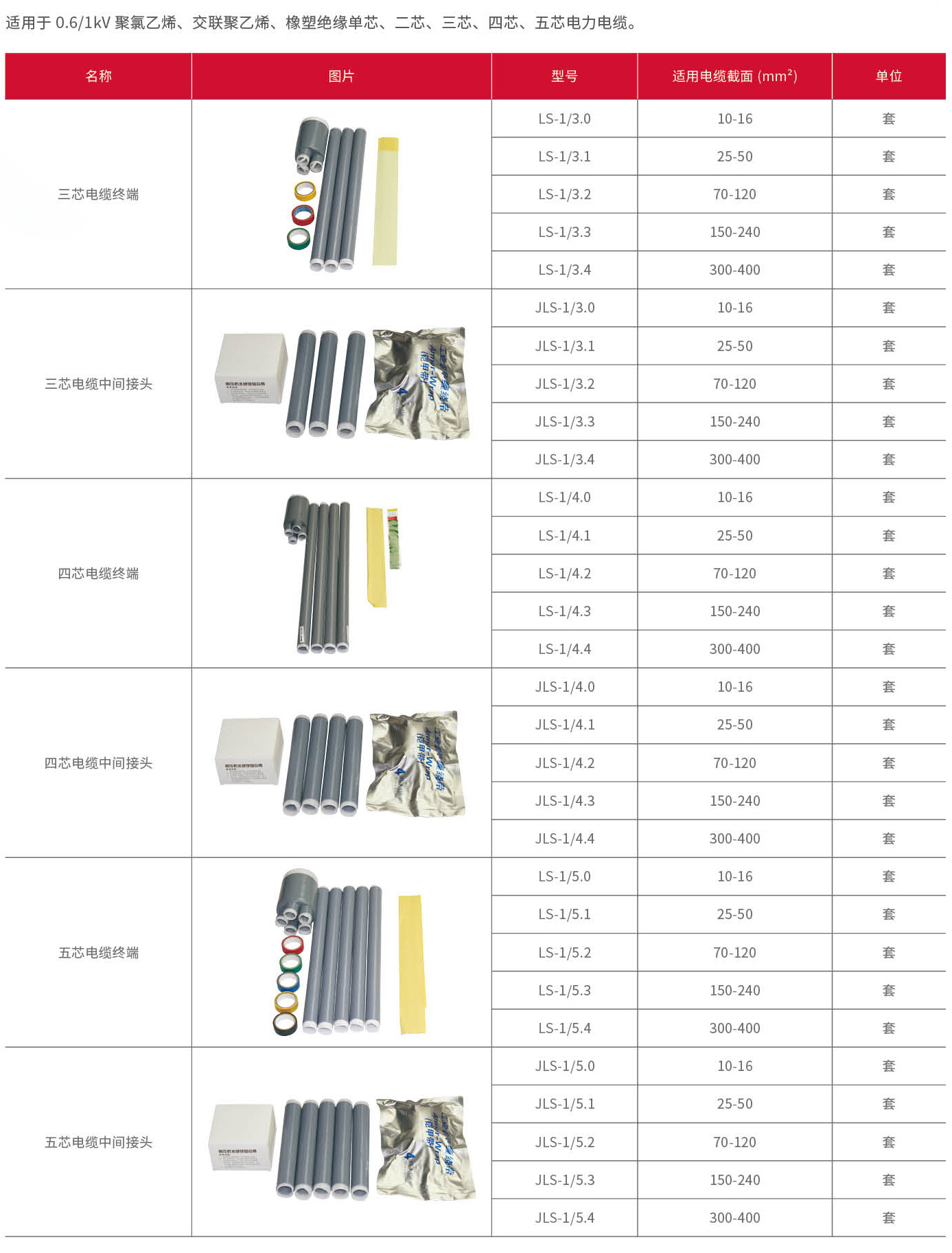 1KV硅橡胶冷缩电缆附件