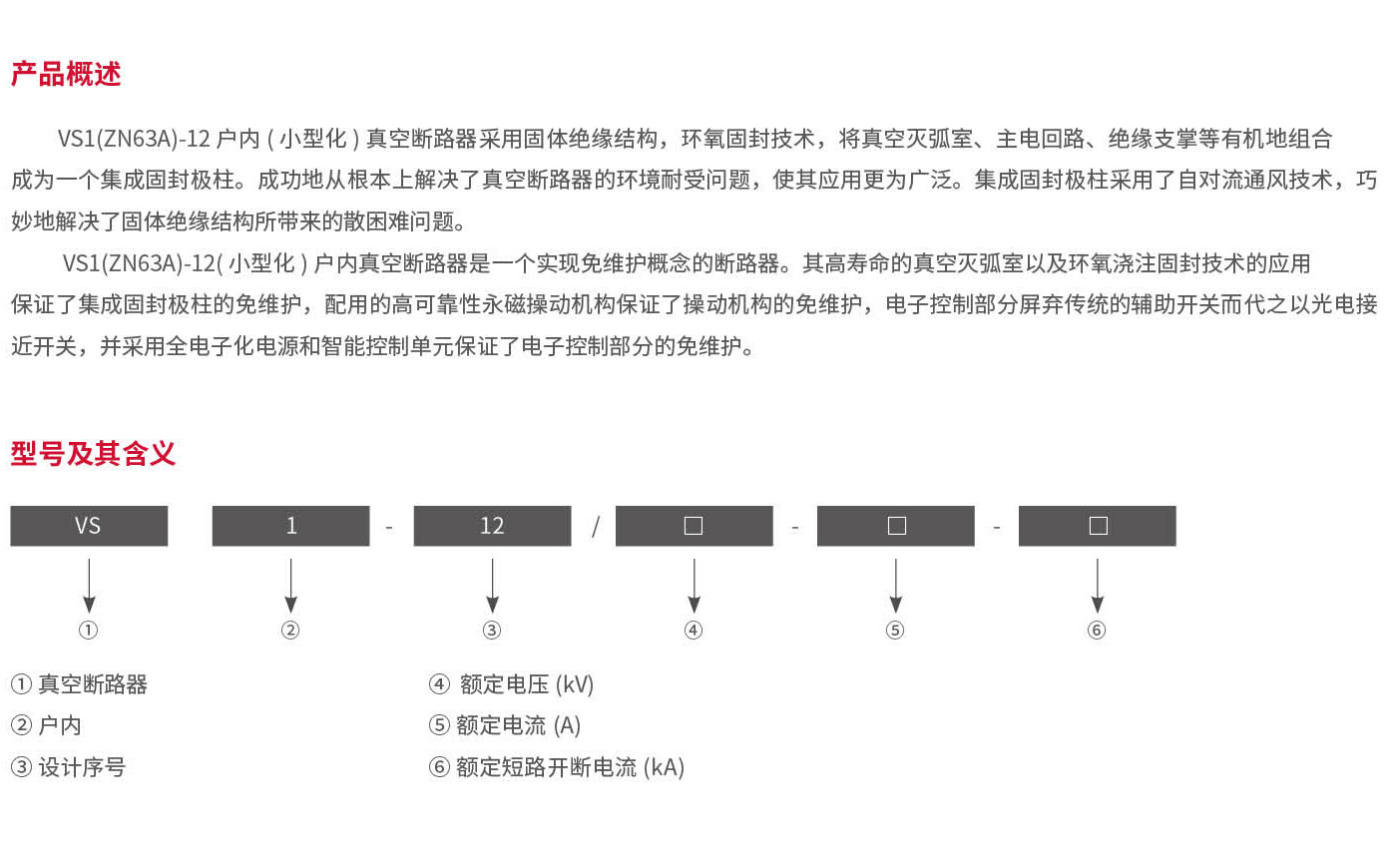 VS1(ZN63A)-12户内(小型化)真空断路器